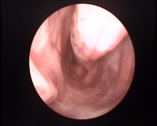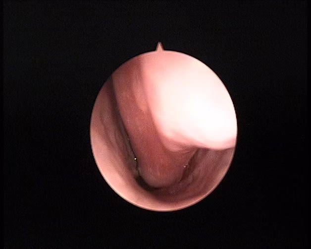 Antes de la cirugía se observa la cola de cornete bloqueando la fosa nasal y produciendo dificultad para respirar.